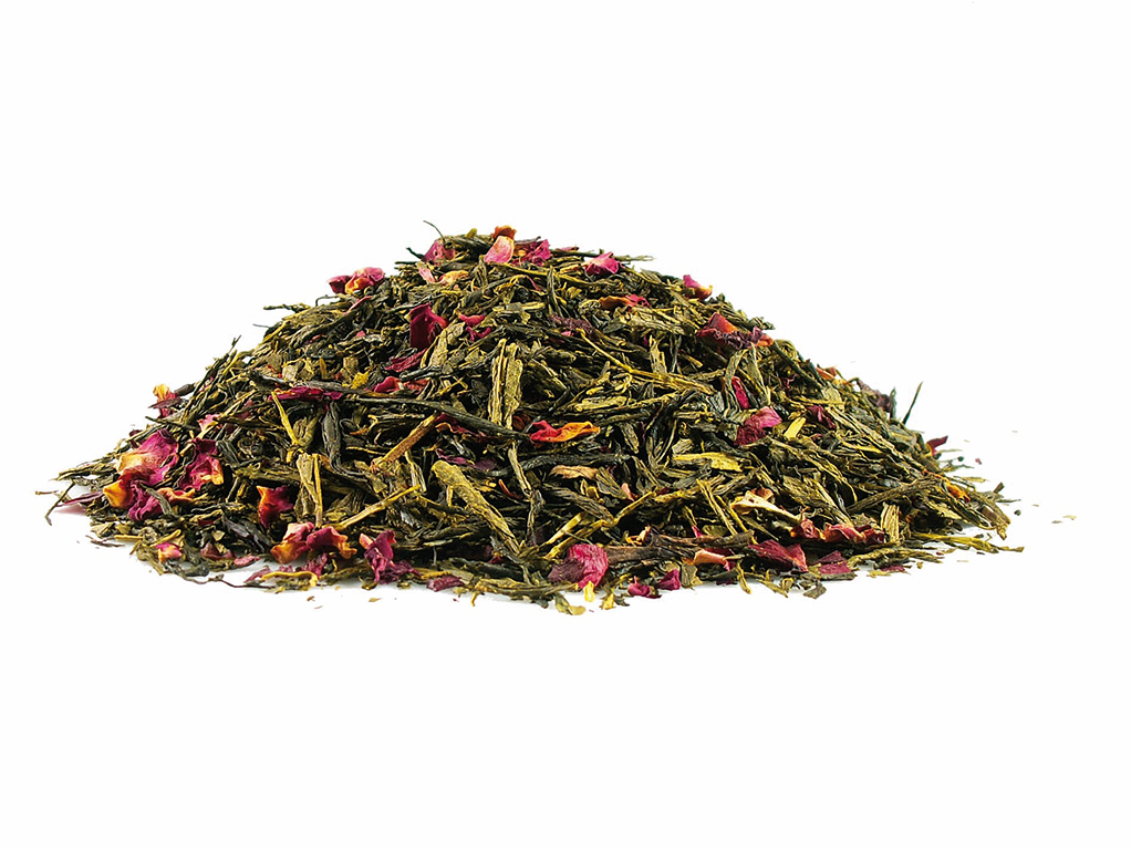 Green tea, flavour, peony flowers, rose petals. Noble cherry-taste.